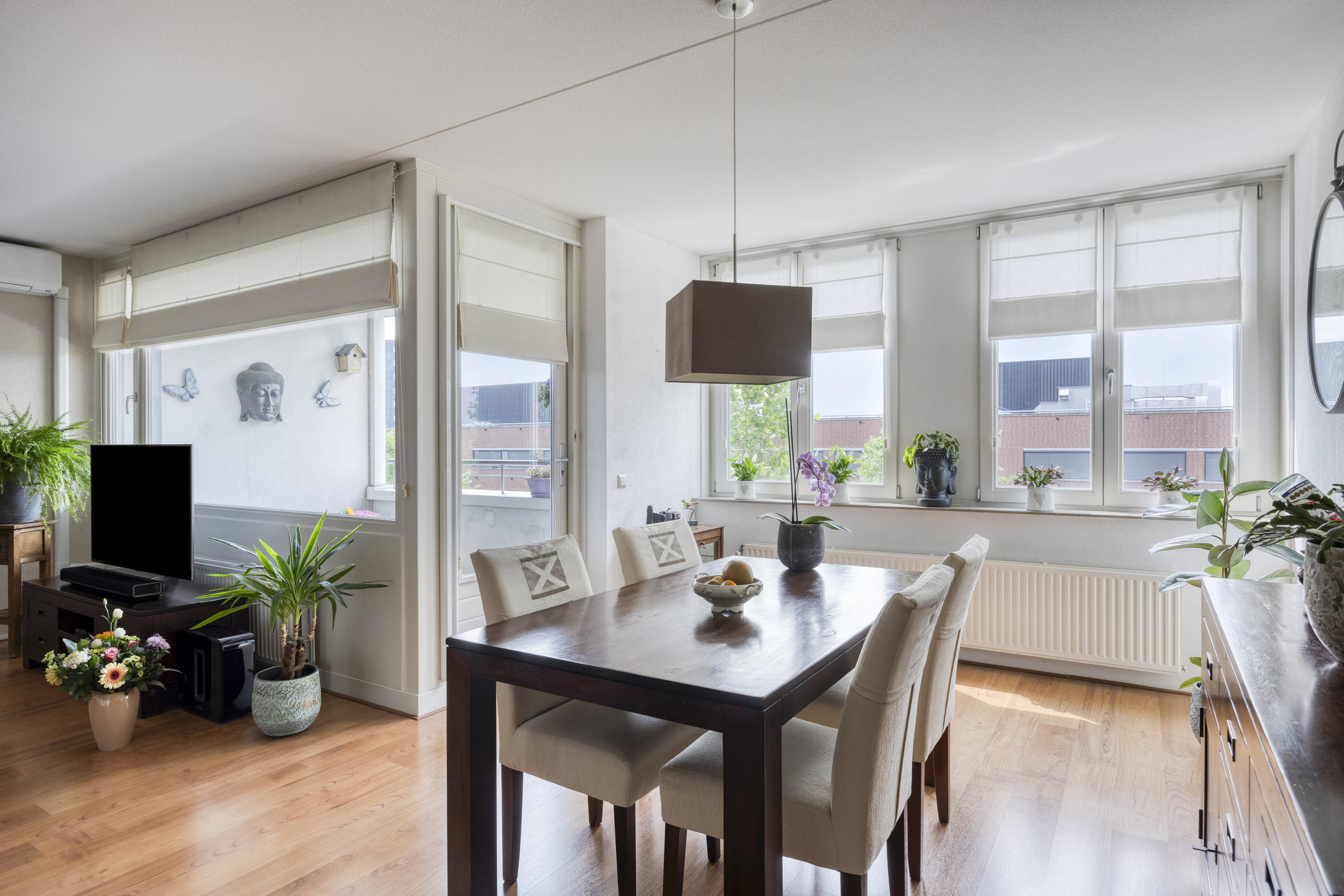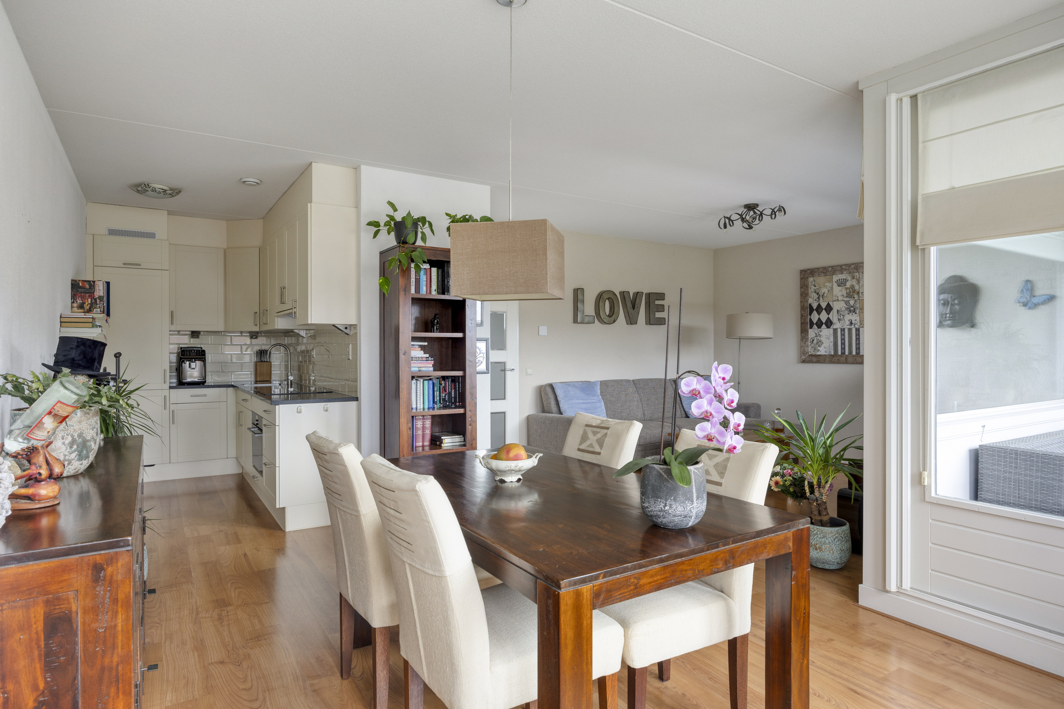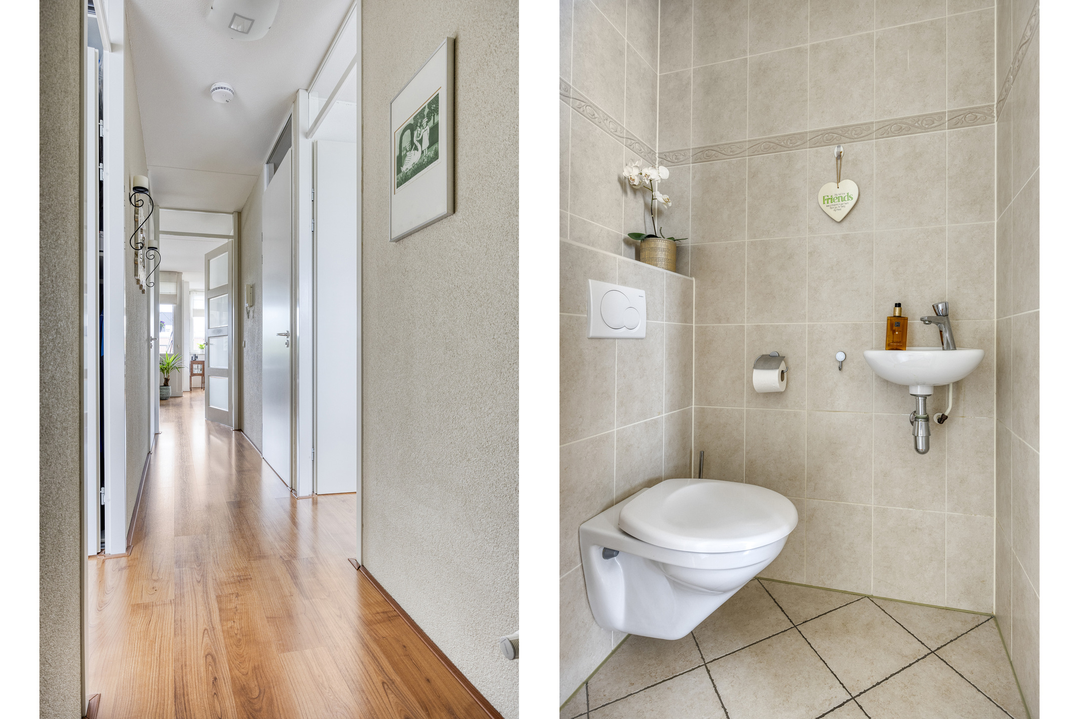 Bij binnenkomst in het appartement stapt u de entreehal binnen, het centrale punt van waaruit u toegang heeft tot vrijwel alle vertrekken. Hier vindt u de meterkast, het separate toilet, de twee slaapkamers, de badkamer en de deur naar de woonkamer. De woonkamer is een uitnodigende leefruimte met volop mogelijkheden voor een gezellige zithoek en een royale eettafel. Dankzij de grote raampartijen komt er veel natuurlijk licht binnen wat zorgt voor een prettige en open sfeer die direct als thuis voelt.