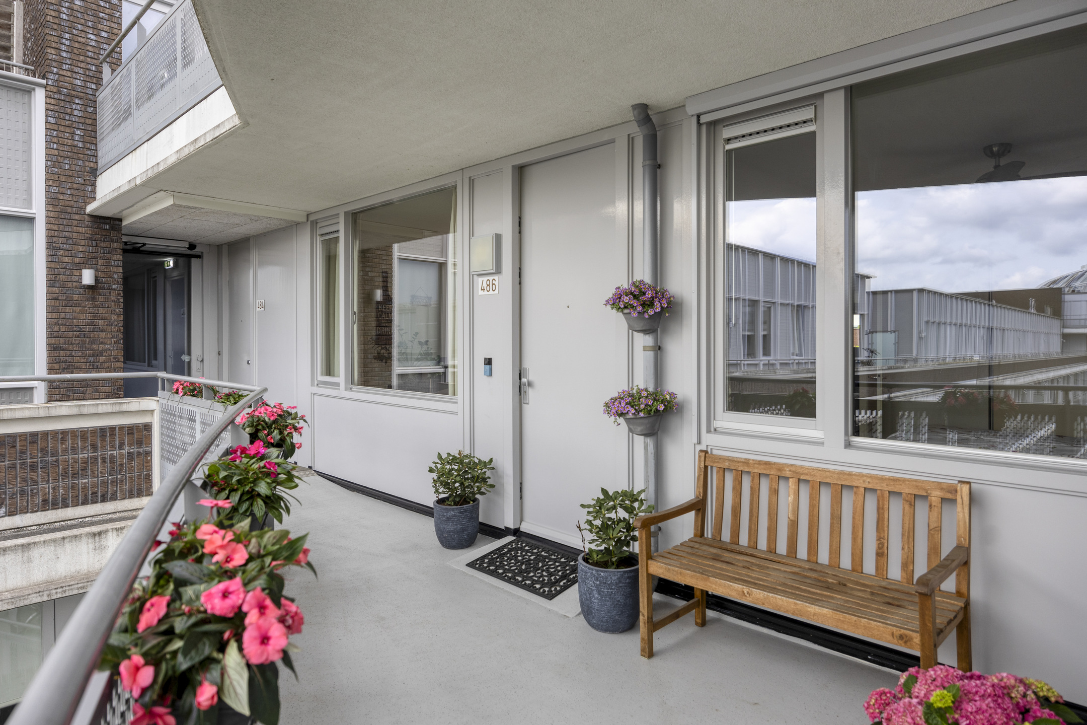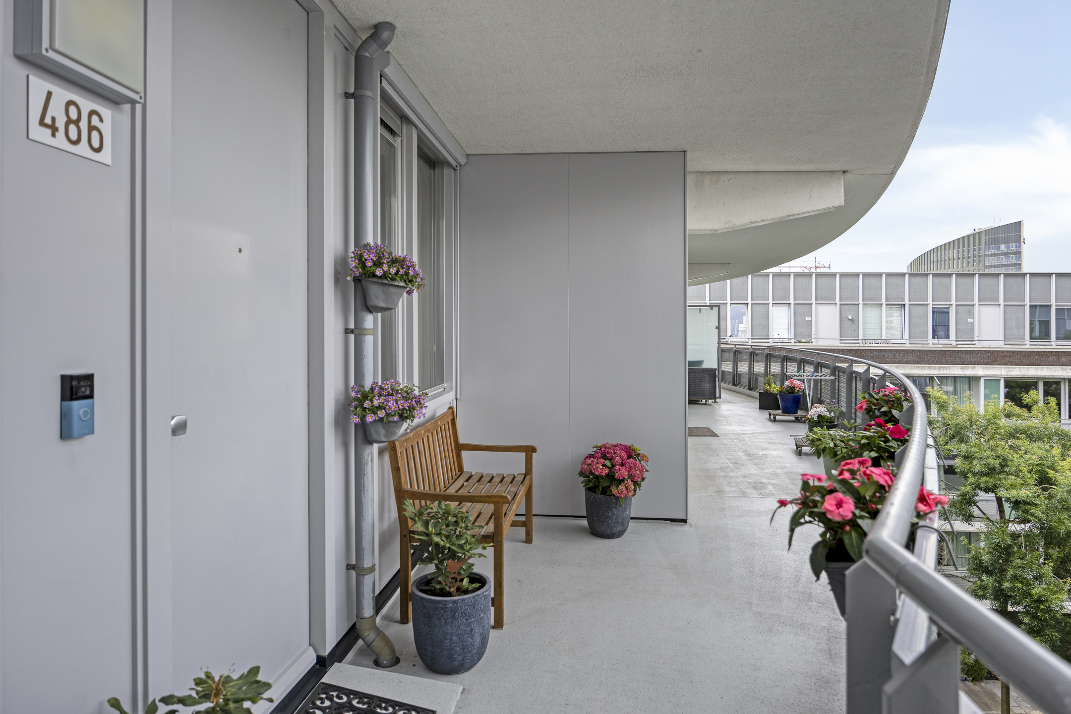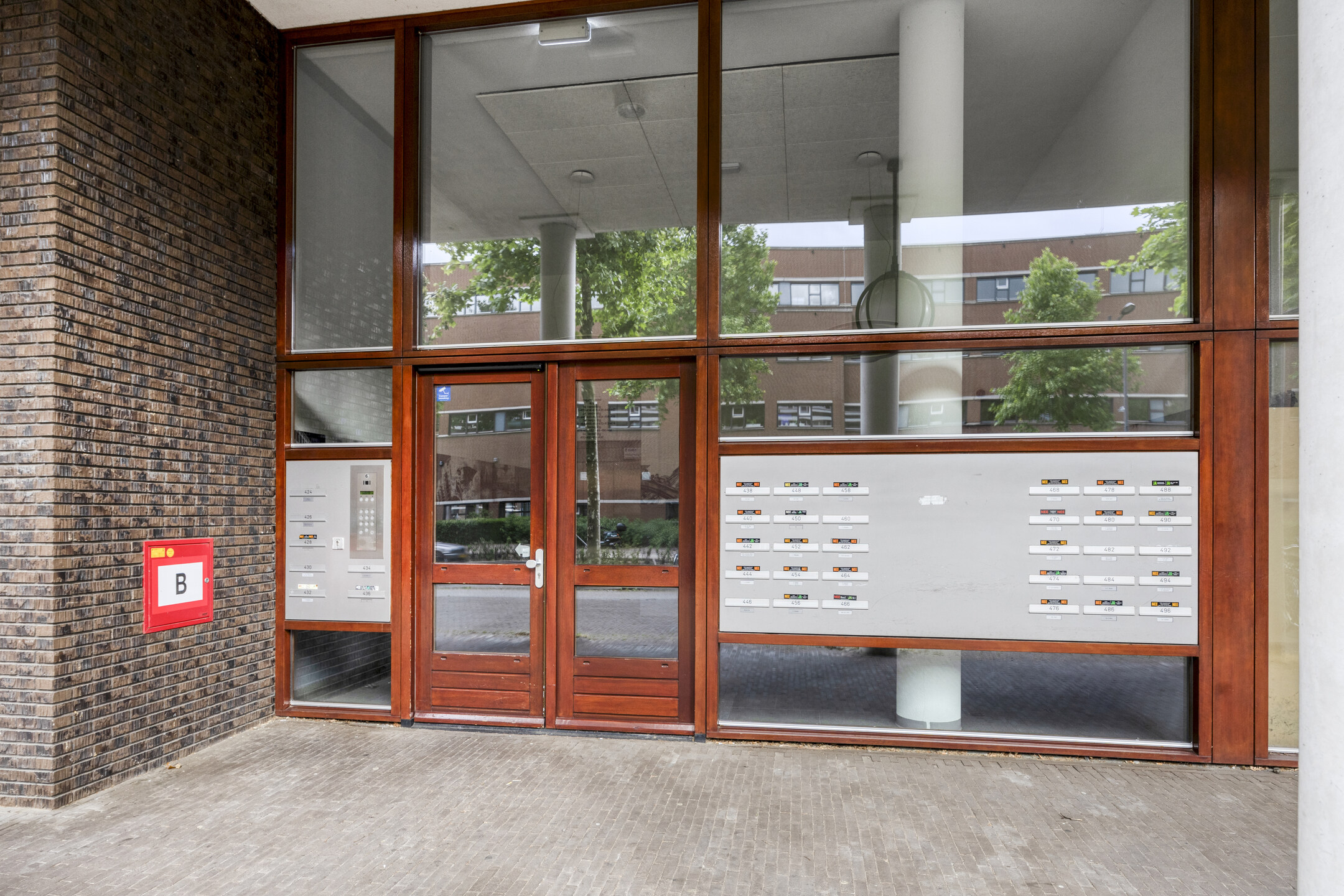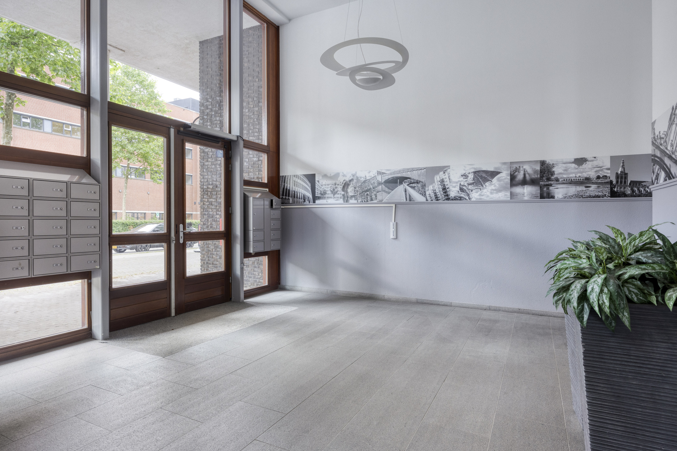 Bij aankomst in het appartementencomplex wordt u verwelkomd in een nette gezamenlijke entree. Hier vindt u de postbussen en een bellentableau met videofooninstallatie. De entree biedt toegang tot het trappenhuis en de lift waarmee u gemakkelijk de vierde verdieping bereikt. Hier bevindt zich het appartement die u bereikt middels de galerij. De galerij kijkt uit op de binnentuin en biedt u een heerlijke zitgelegenheid.