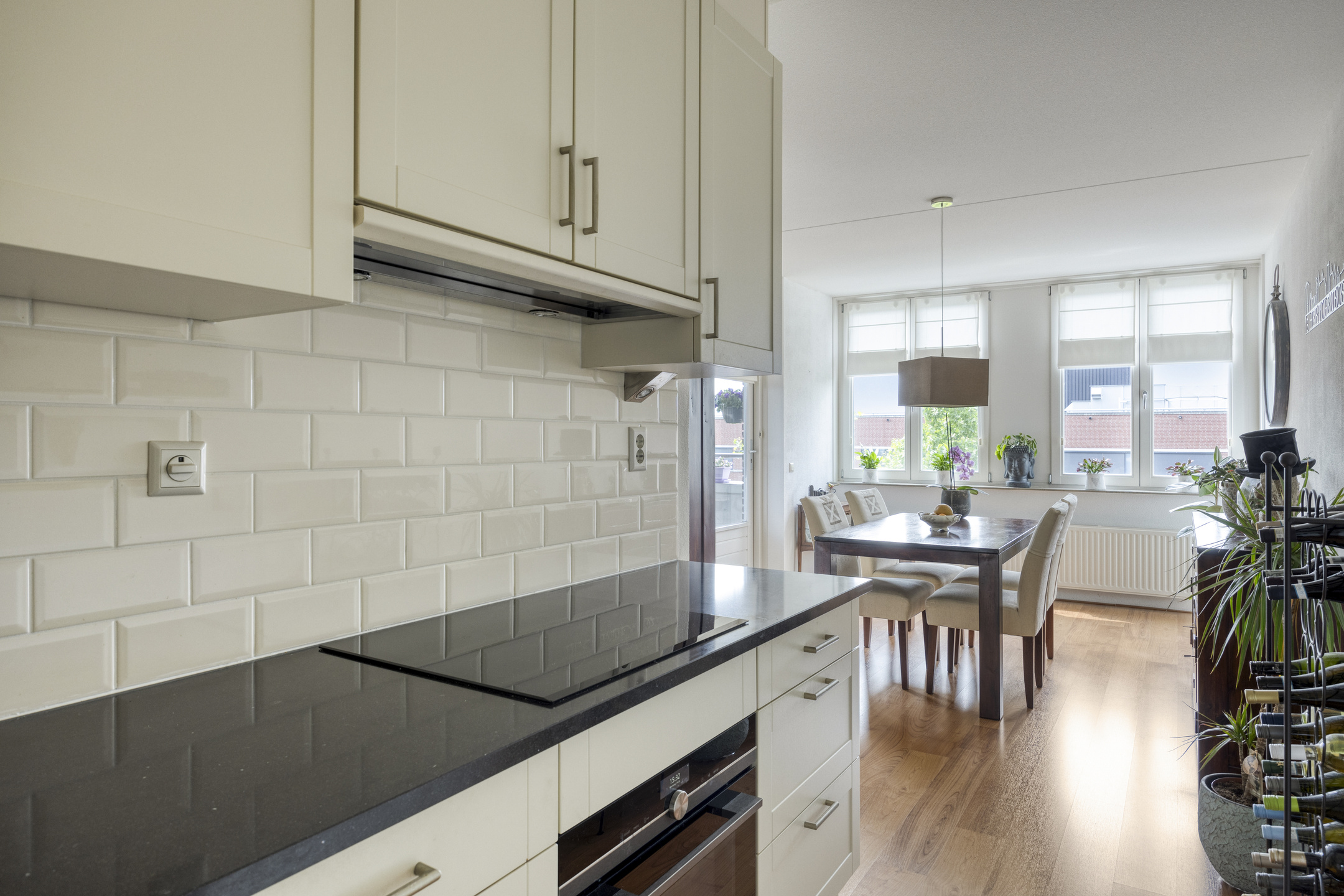 De open keuken is voorzien van een inductiekookplaat, afzuigkap, combi-oven, koel-vriescombinatie en een vaatwasser. Via de woonkamer heeft u toegang tot het balkon waar u heerlijk buiten kunt zitten en kunt genieten van het uitzicht. Ideaal voor een ochtendkoffie of een rustige avond in de buitenlucht. Daarnaast beschikt de woonkamer over een praktische berging, de perfecte plek voor huishoudelijke apparaten of provisie.